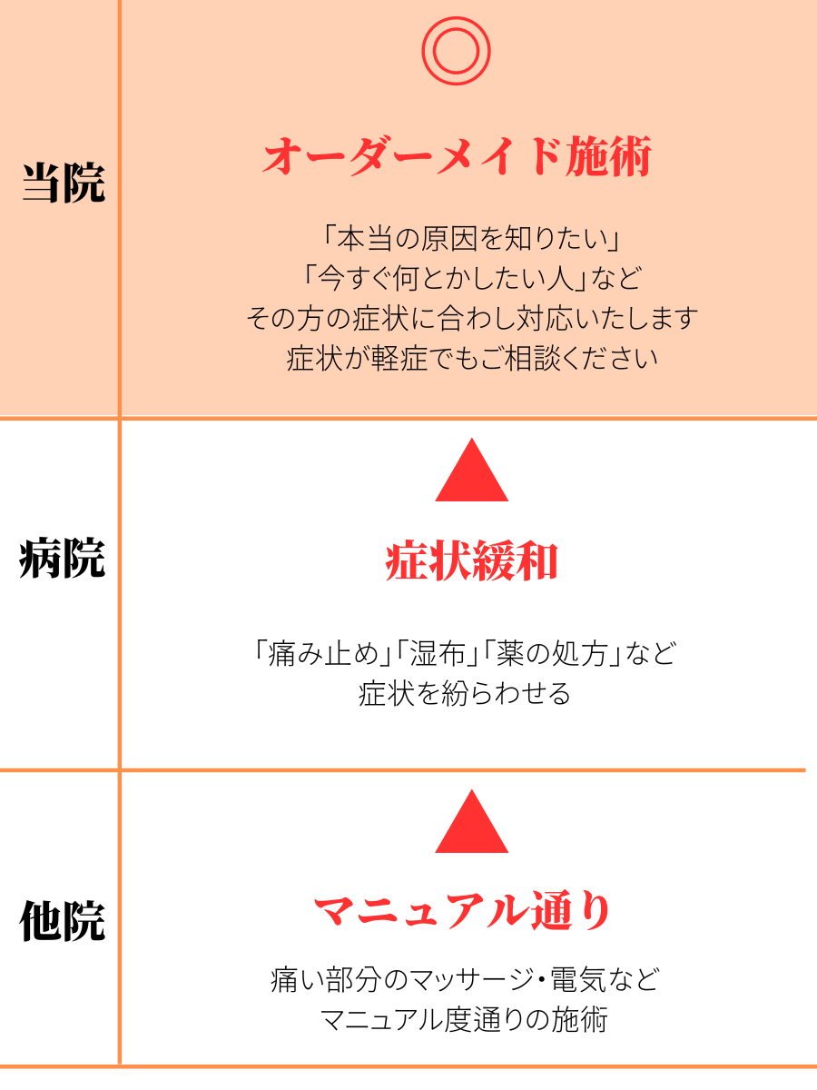 当院は、あなたの体に合わし 検査・施術を細かく行い 辛い腰痛を